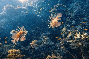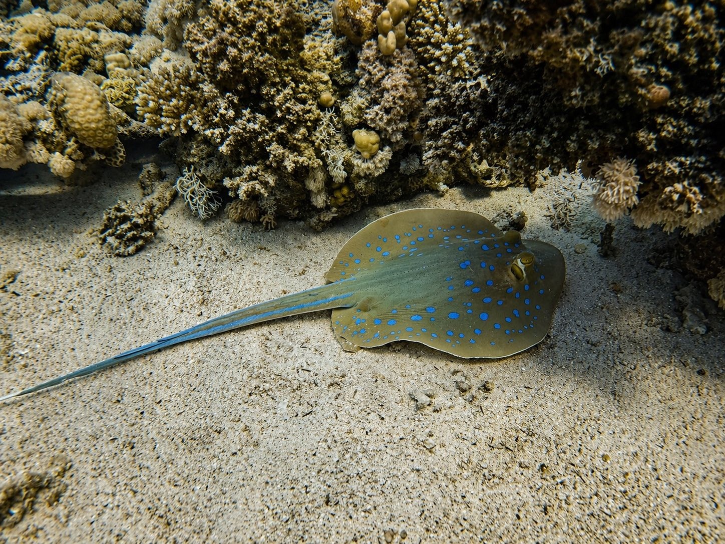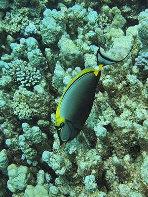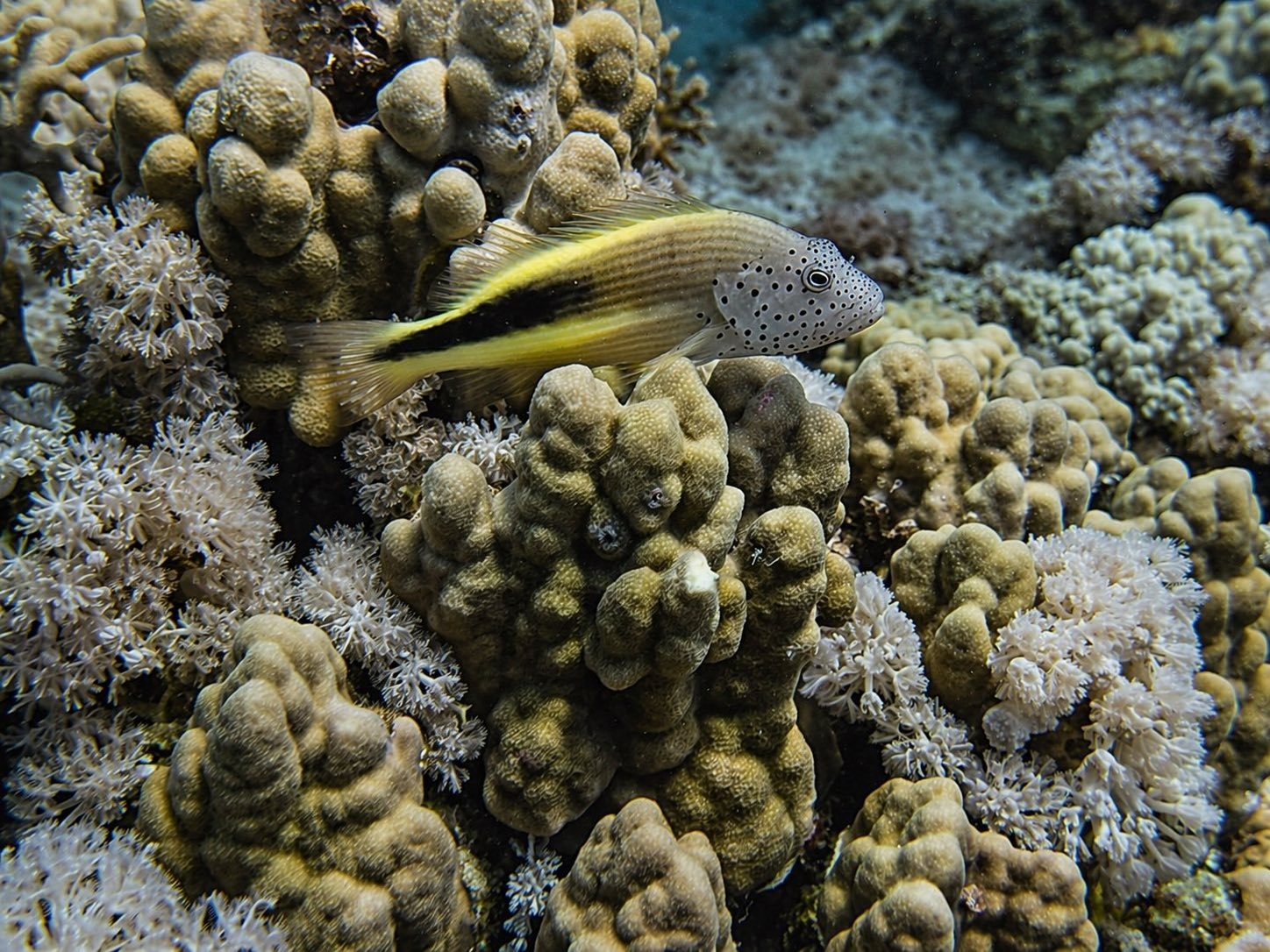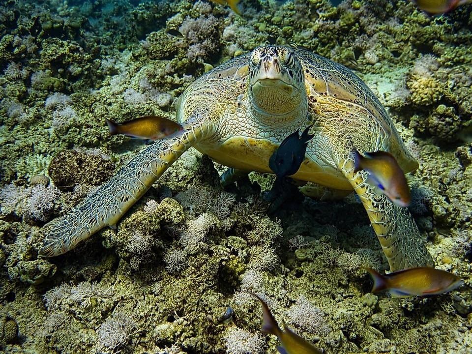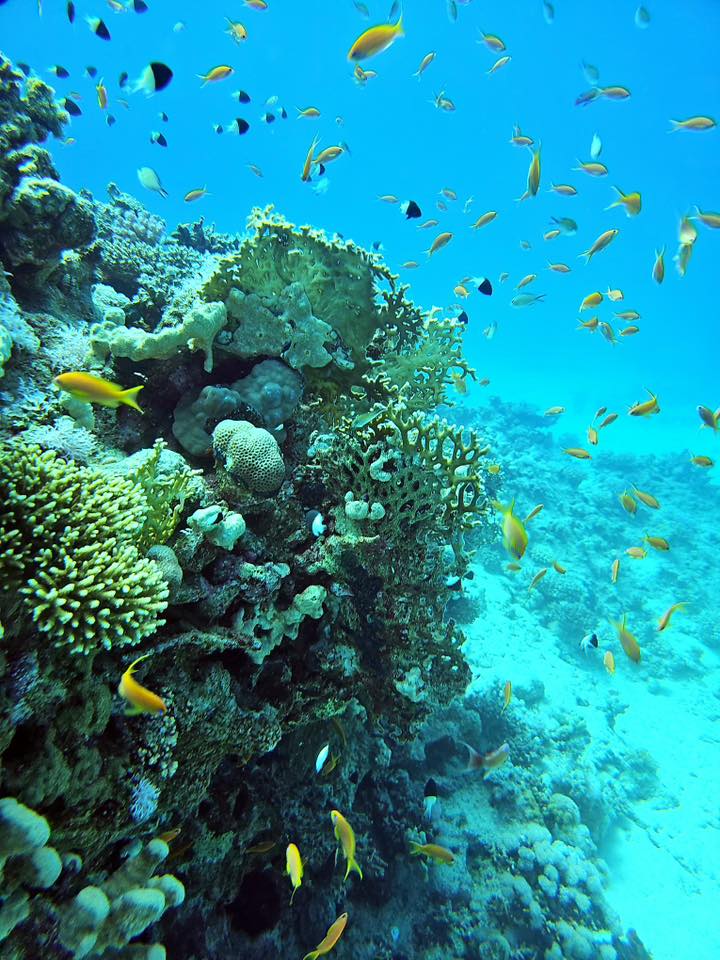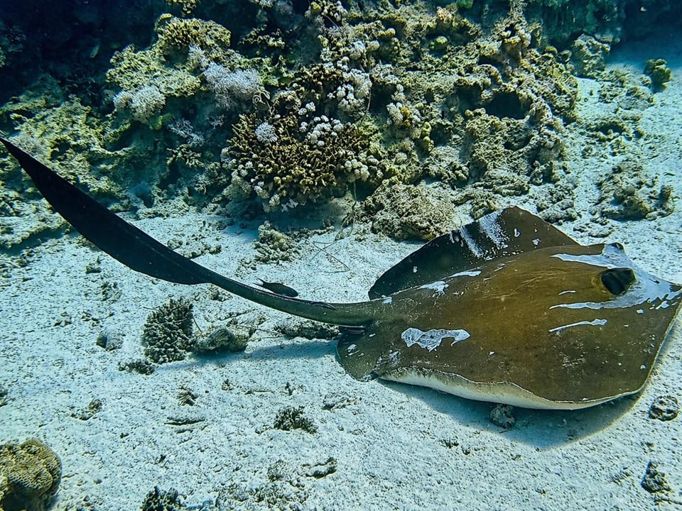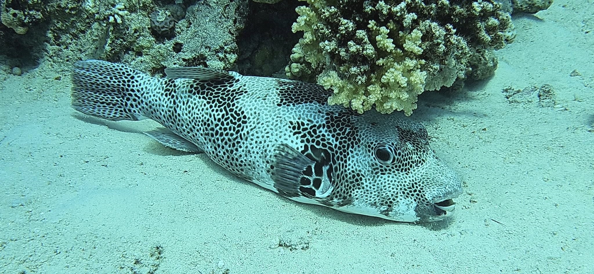 An Fisch gab’s eigentlich alles, was man sich für das Rote Meer wünscht: Muränen, Blaupunktrochen, Napoleon-Lippfische, grüne Meeresschildkröten, Stachelrochen, Adlerrochen, Riesen-Kugelfische und natürlich jede Menge bunte Rifffische. Wir hatten etwas Glück, denn auch Delfine gaben sich die Ehre.